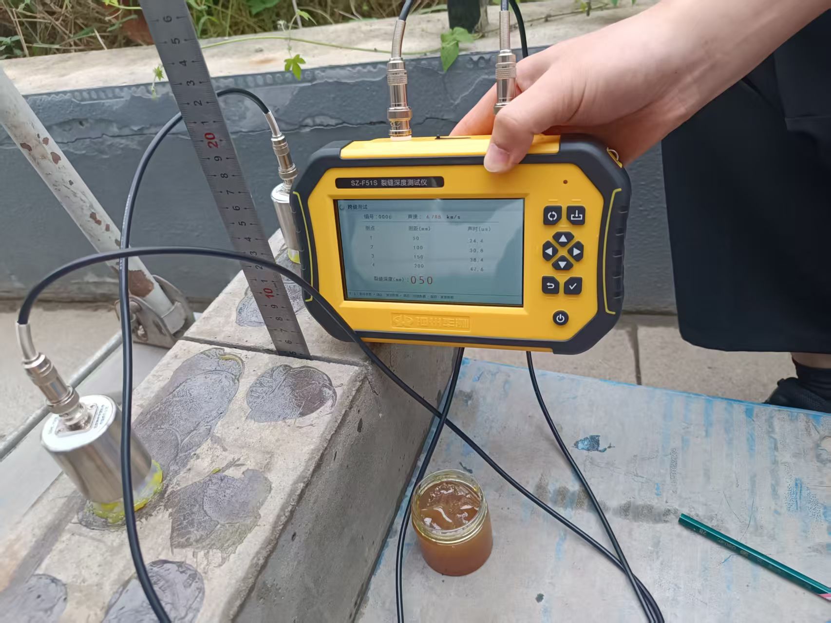 在模擬混凝土試塊的檢測環(huán)節(jié),SZ-F51S的性能優(yōu)勢全面凸顯。這款儀器基于聲波繞射原理研發(fā),搭載32位ARM內(nèi)核處理單元,最大可測裂縫深度達650mm,測試誤差≤10%,裂縫深度可以精確到0.1毫米,無需人工判讀聲參量,大幅提升檢測效率。其包膠外殼設(shè)計兼顧便攜性與防護性,硅膠防水鍵盤適配復雜工程環(huán)境,可拆卸松下鋰電池支持充電寶應(yīng)急充電,完美匹配現(xiàn)場檢測的多樣需求。參測機構(gòu)反饋,SZ-F51S在不同深度裂縫的模擬試塊檢測中,數(shù)據(jù)精準度遠超預期,且操作流程簡易,新手也能快速上手。